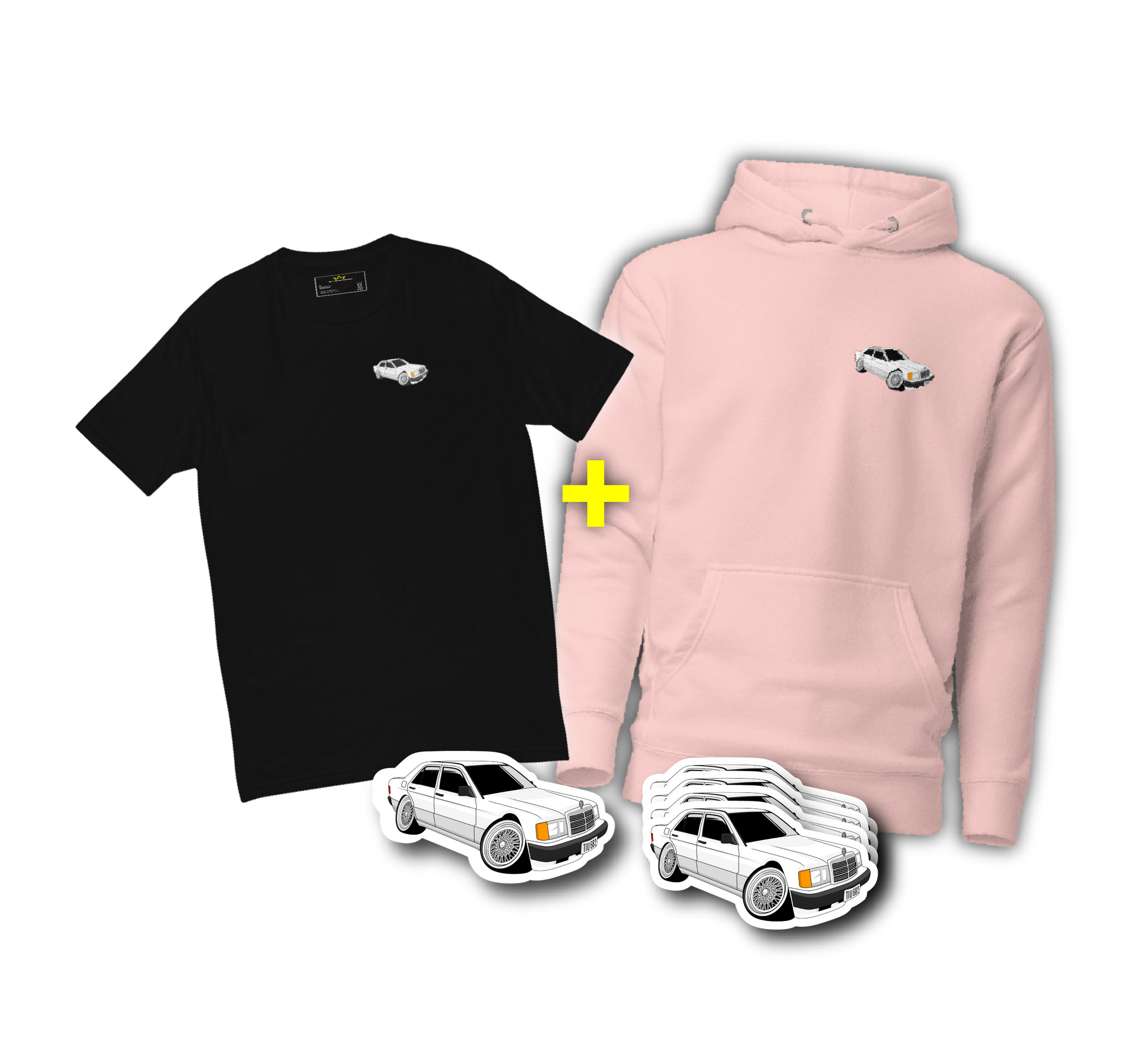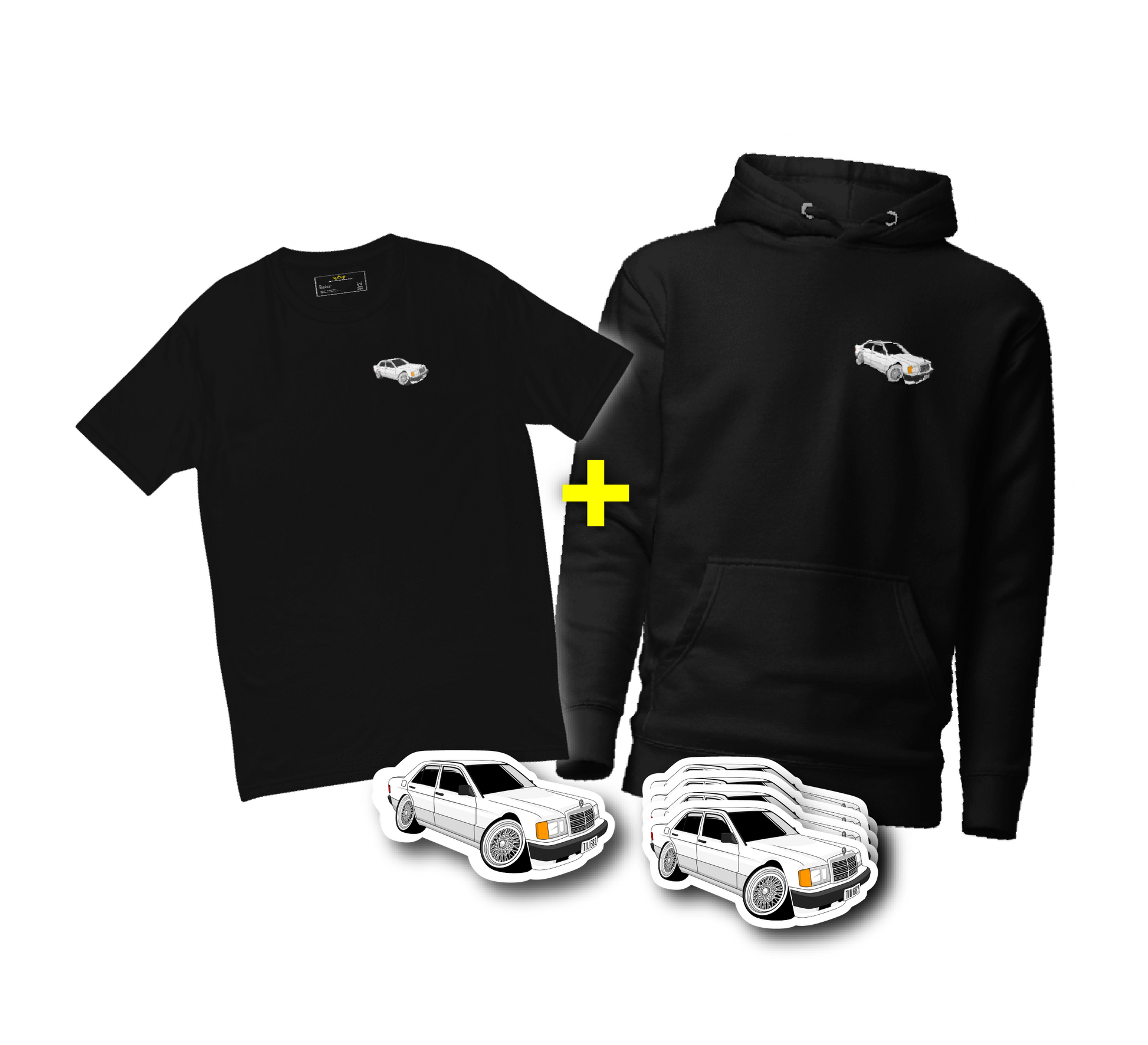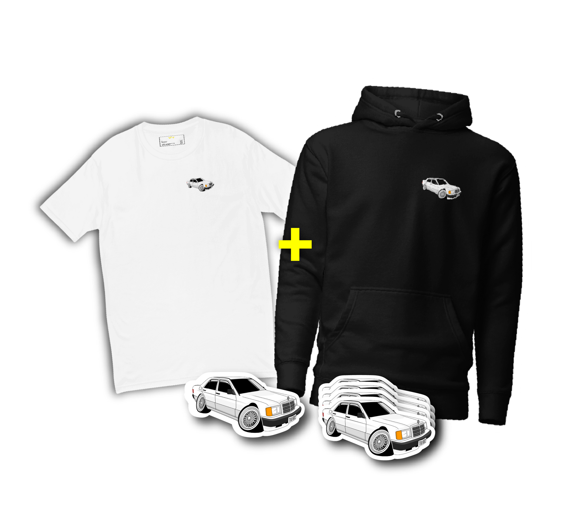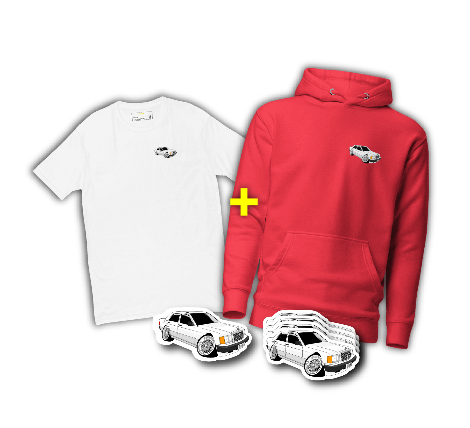 Täydellinen arkeen ja vapaa-ajalle: Tämä paketti tarjoaa monipuolisuutta – rento T-paita ja lämmin huppari pitävät sinut tyylikkäänä ympäri vuoden. Tarrat viimeistelevät kokonaisuuden ja kulkevat mukanasi minne tahansa, tuoden menopelisi ilmeen esiin missä vain.